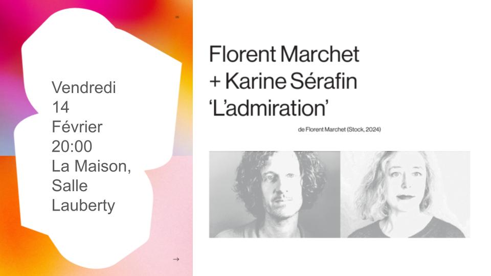 L’Admiration, c’est le roman du Paris perdu entre les années 1990 et 2000, du Pigalle dans le brouillard, des artistes en devenir et des Bel-Ami modernes. C’est aussi le roman de la chance, celle que l’on cherche et qui bien souvent nous délaisse. Florent Marchet met en voix et en musique cette deuxième fiction au côté de la chanteuse et musicienne Karine Sérafin.