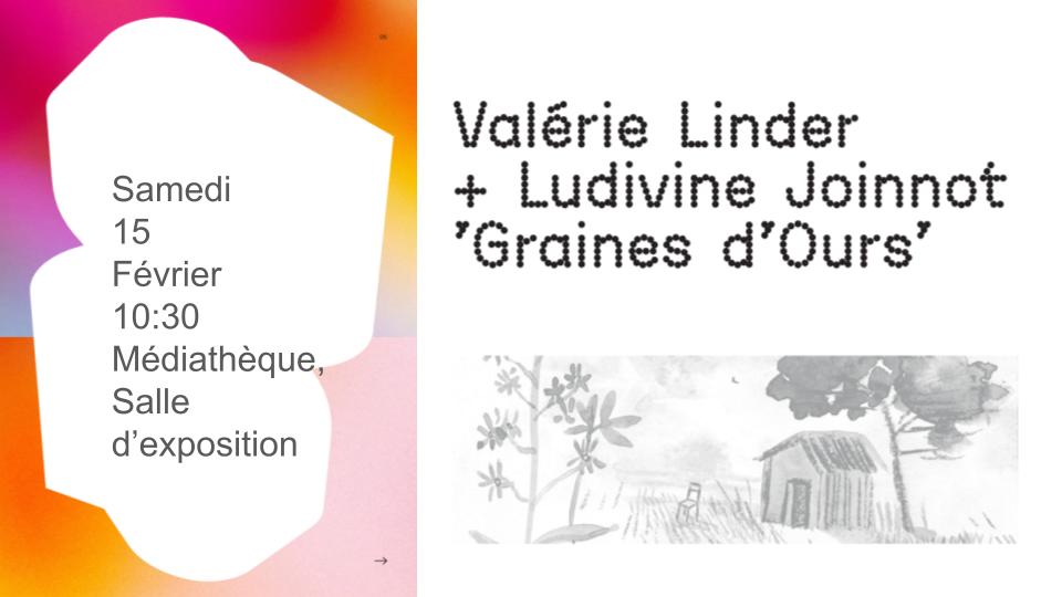 Valérie Linder dirige la collection Graines d’ours aux éditions L’Ail des ours. Elle illustre régulièrement les livres de la collection ainsi que d’autres livres dans d’autres maisons d’édition pour la jeunesse. Ludivine Joinnot anime des ateliers de lecture, d’écriture et de mises en voix pour petits et grands.