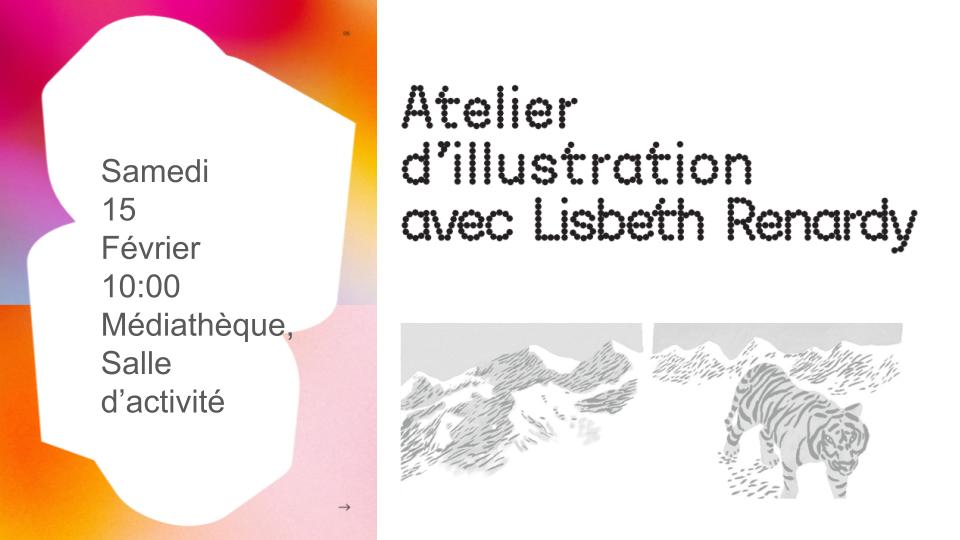 Lisbeth Renardy est illustratrice diplômée d’illustration à l’ÉSA St-Luc. Le jeune public est invité à découvrir ses techniques et à s’initier à l’illustration tout en douceur et en plaisir.